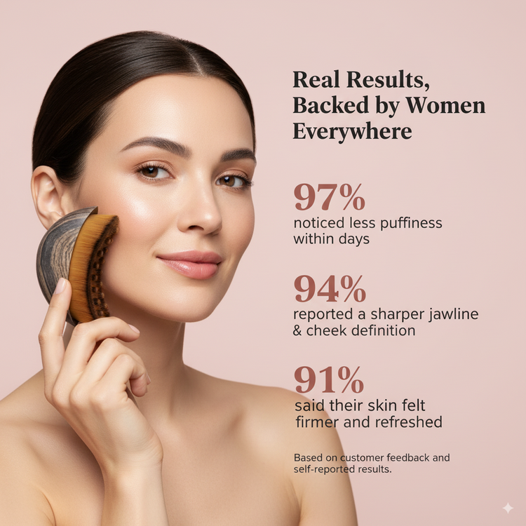 Watch how our half-moon brush hugs every curve to drain away swelling and reveal your natural structure. Real results from real women who traded their heavy rollers for our soft, airy bristles.