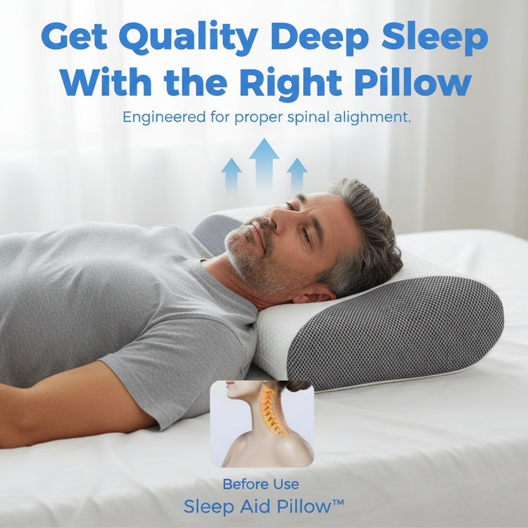 Our Sleep Aid Pillow™ uses slow-rebound memory foam with an ergonomic design that specifically cradles your head, neck, and shoulders to maintain proper spinal alignment. It's built for targeted support and comfort, unlike traditional pillows.