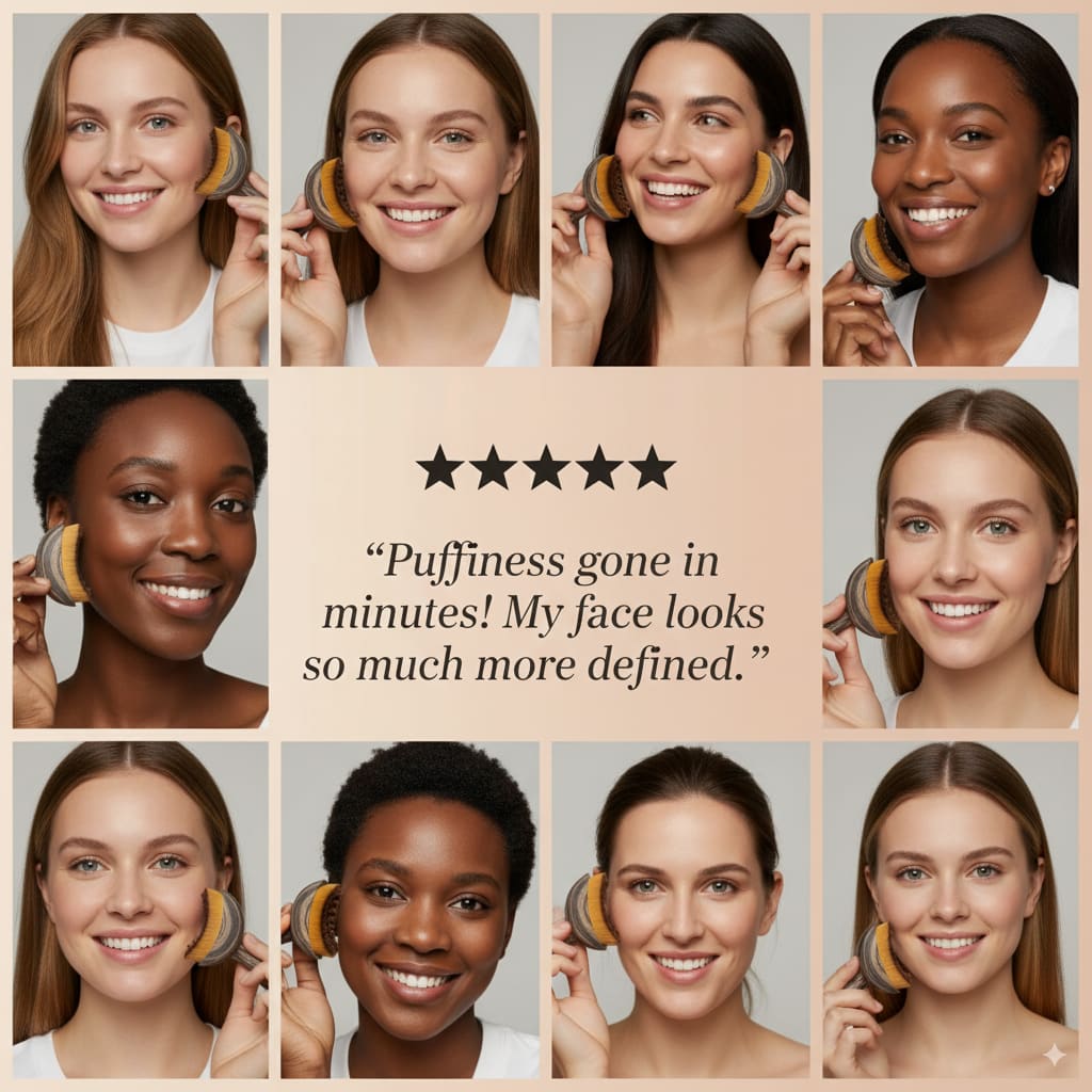 See the magic happen in real-time! Our community loves showing off their defined jawlines and depuffed cheeks after just a few minutes of sweeping with Velmora.